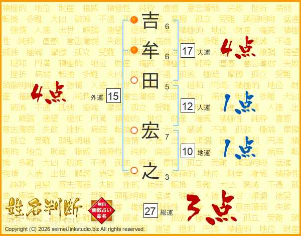 吉牟田宏之さんの天運は17画の4点!