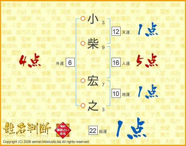 小柴宏之さんの総運は22画の1点!