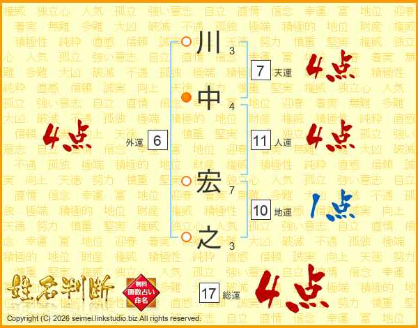 川中宏之さんの総運は17画の4点!
