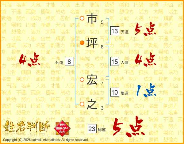 市坪宏之さんの総運は23画の5点!