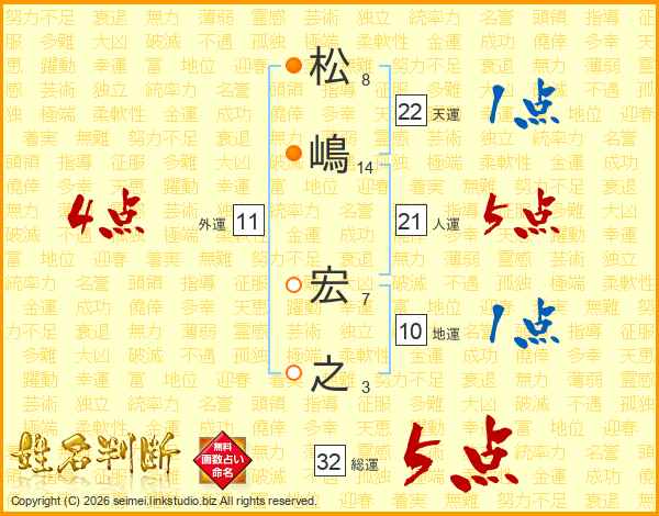 松嶋宏之さんの総運は32画の5点!