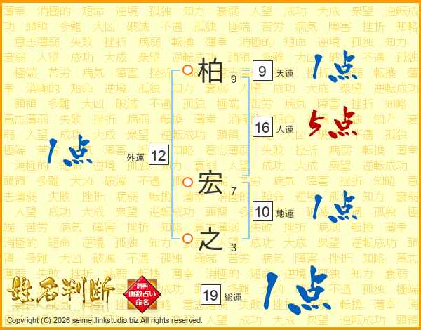 柏宏之さんの総運は19画の1点!
