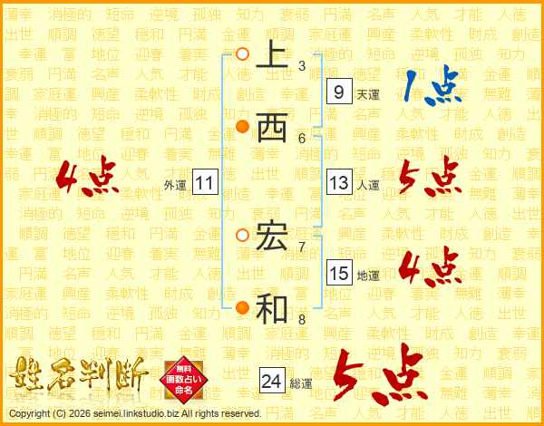 上西宏和さんの総運は24画の5点!