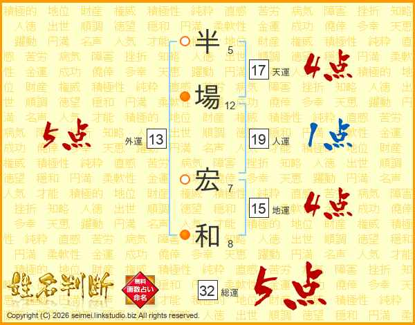 半場宏和さんの総運は32画の5点!