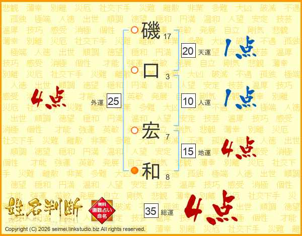 磯(17画)口(3画) 宏(7画)和(8画)