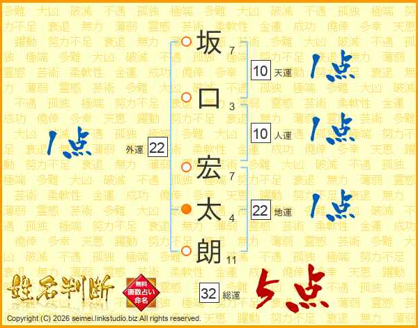 坂口宏太朗さんの総運は32画の5点!