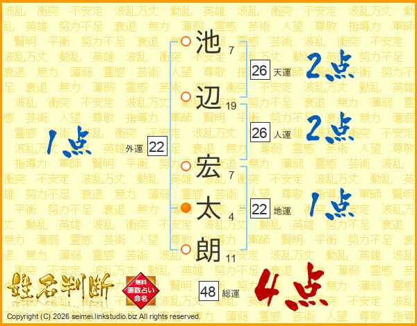 池辺宏太朗さんの天運は26画の2点!