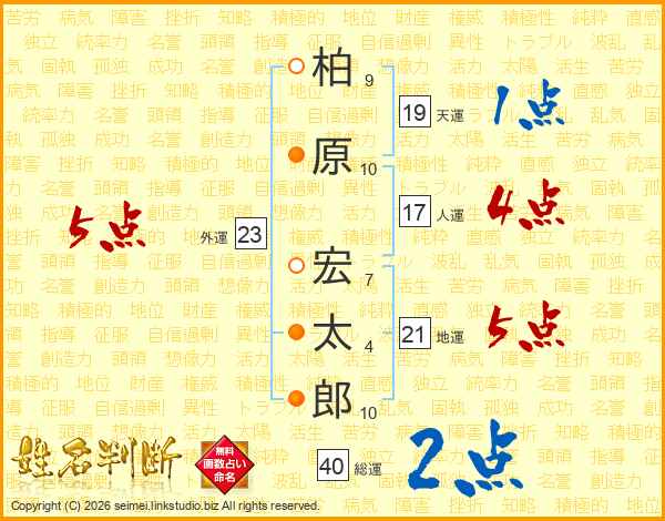 柏原宏太郎さんの総運は40画の2点!