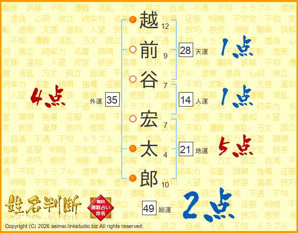 越前谷宏太郎さんの地運は21画の5点!