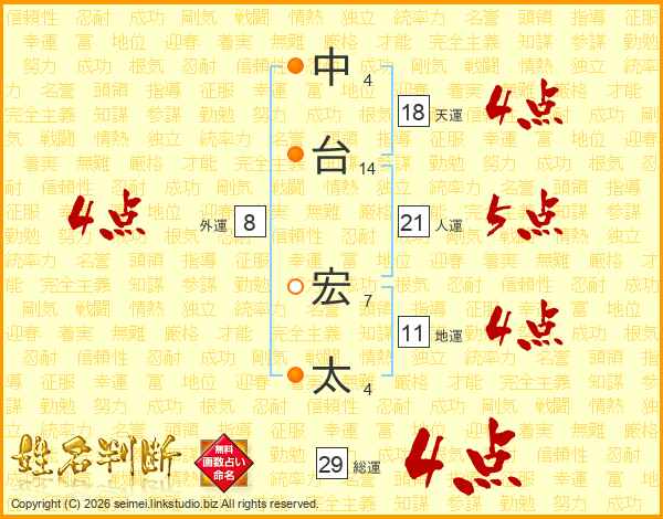 中台宏太さんの総運は29画の4点!