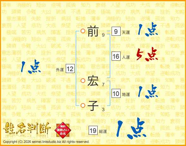 前(9画) 宏(7画)子(3画)