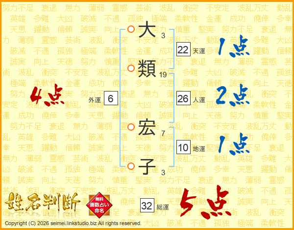 大類宏子さんの人運は26画の2点!