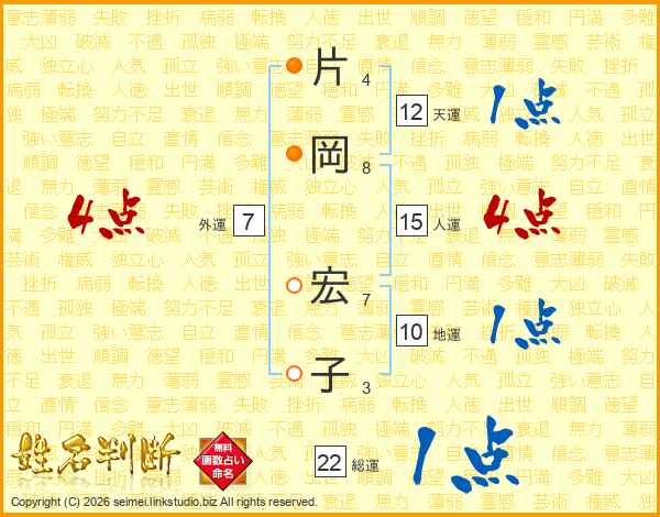 片岡宏子さんの人運は15画の4点!