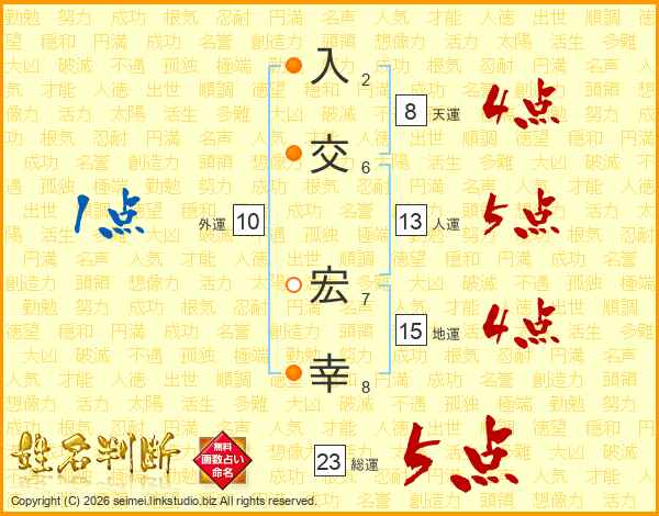 入交宏幸さんの総運は23画の5点!