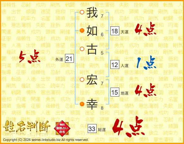 我如古宏幸さんの総運は33画の4点!