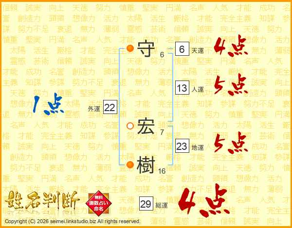 守宏樹さんの総運は29画の4点!