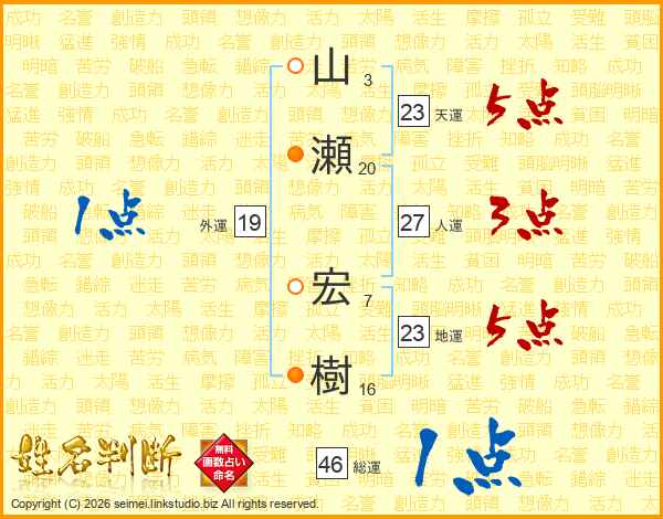 山瀬宏樹さんの総運は46画の1点!