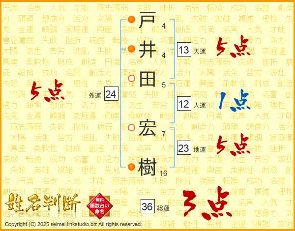 戸井田宏樹さんの天運は13画の5点!