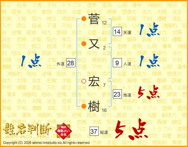 菅又宏樹さんの総運は37画の5点!
