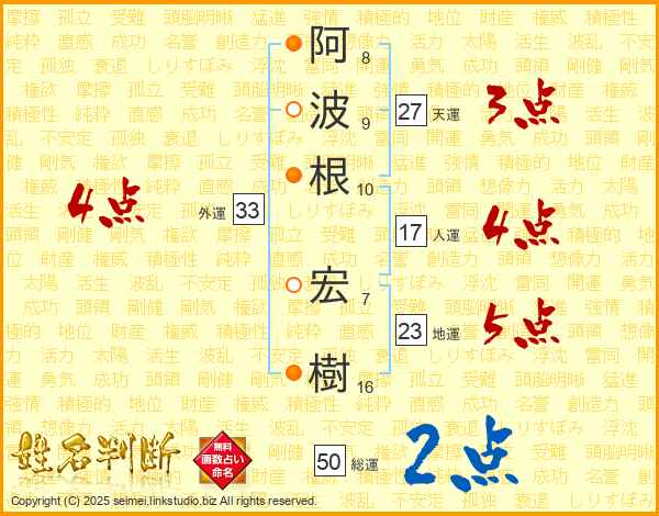 阿波根宏樹さんの外運は33画の4点!