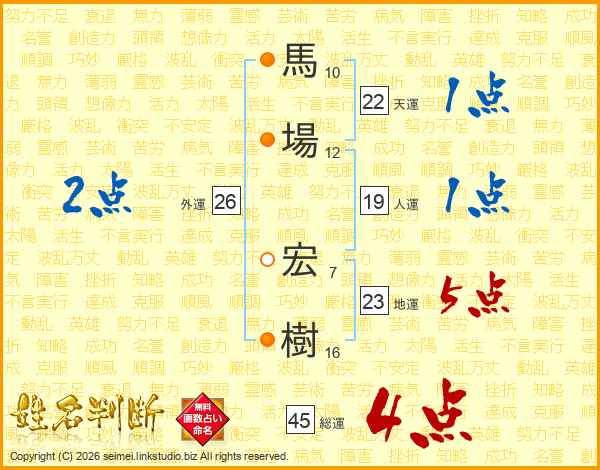 馬場宏樹さんの総運は45画の4点!
