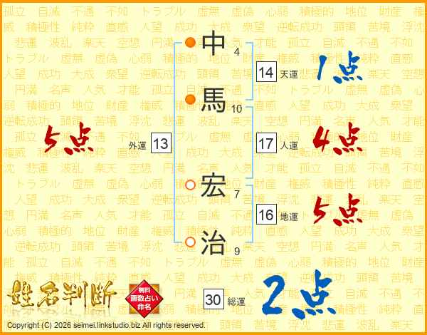 中馬宏治さんの総運は30画の2点!
