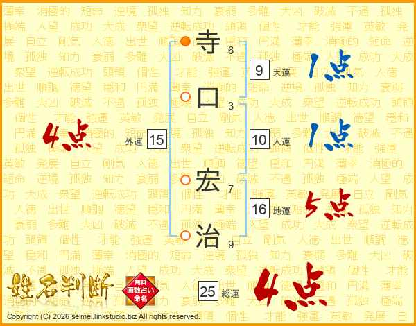 寺口宏治さんの総運は25画の4点!