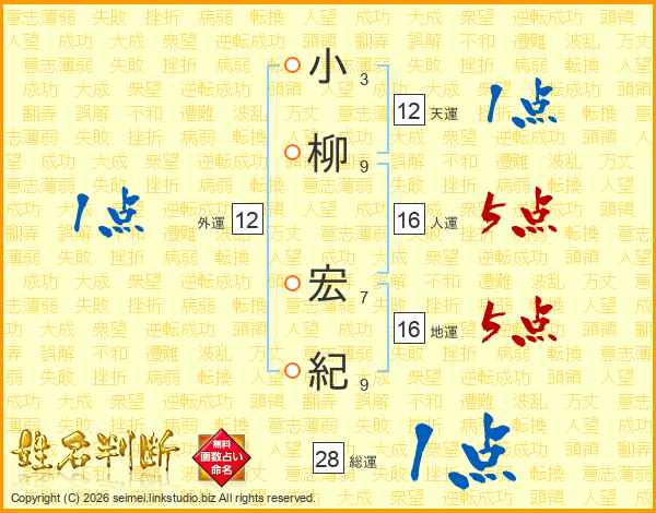 小柳宏紀さんの総運は28画の1点!