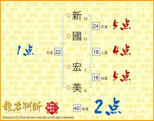 新國宏美さんの天運は24画の5点!