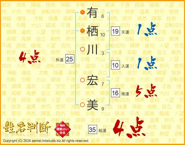有栖川宏美さんの総運は35画の4点!