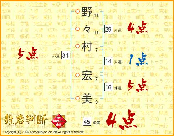 野々村宏美さんの総運は45画の4点!