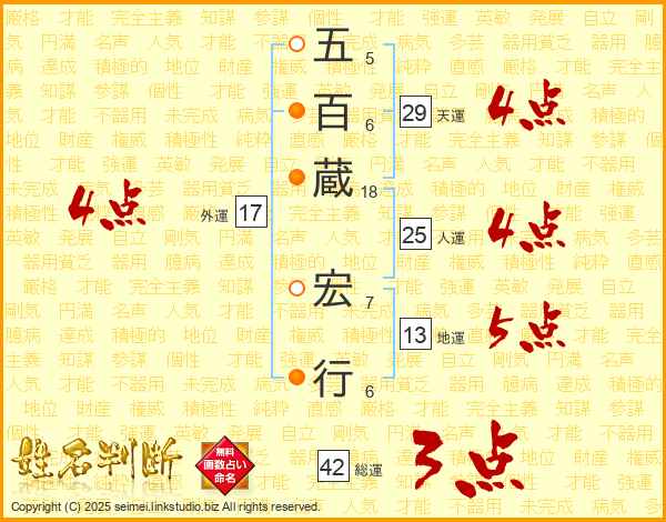 五(5画)百(6画)蔵(18画) 宏(7画)行(6画)