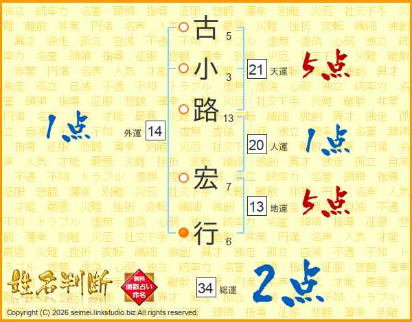 古小路宏行さんの天運は21画の5点!
