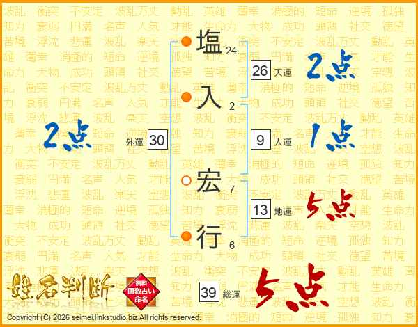 塩入宏行さんの総運は39画の5点!