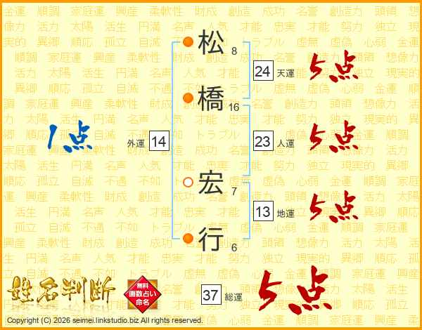 松橋宏行さんの総運は37画の5点!