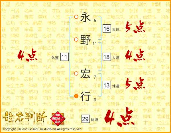 永野宏行さんの総運は29画の4点!