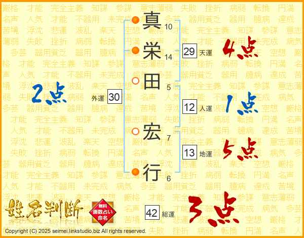 真(10画)栄(14画)田(5画) 宏(7画)行(6画)