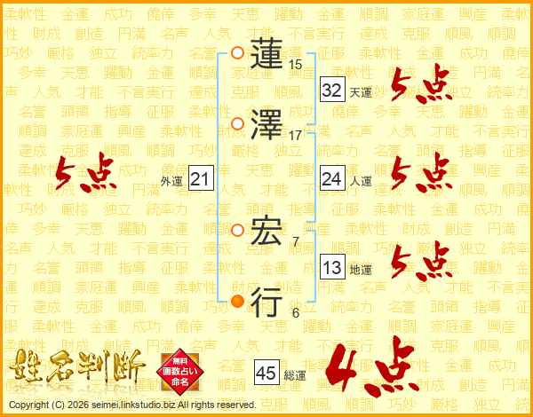 蓮澤宏行さんの総運は45画の4点!
