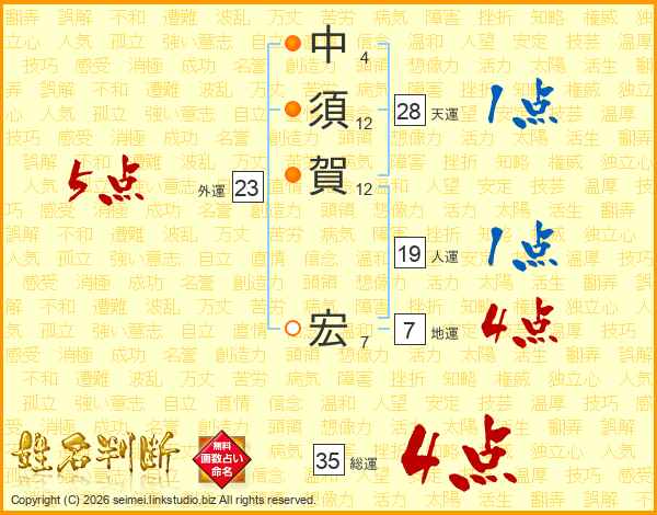 中(4画)須(12画)賀(12画) 宏(7画)