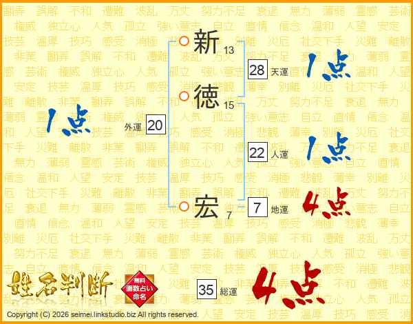 新徳宏さんの総運は35画の4点!