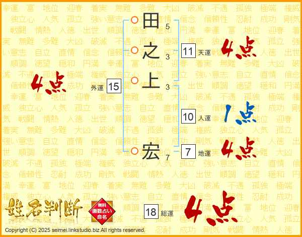 田之上宏さんの天運は11画の4点!