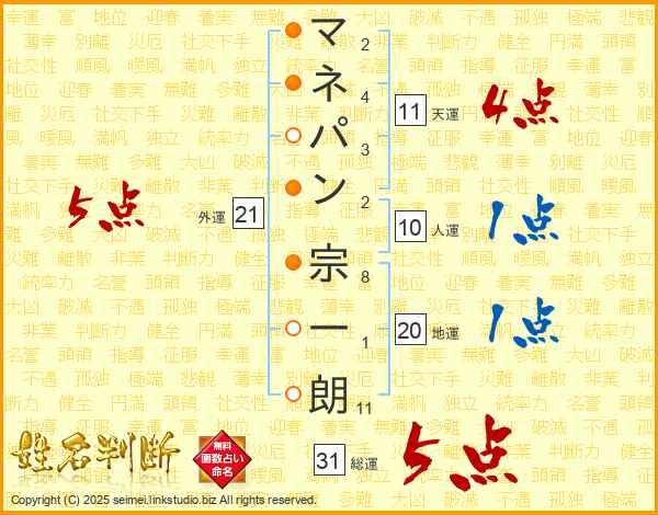 マネパン宗一朗さんの総運は31画の5点!