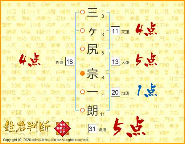三ヶ尻宗一朗さんの総運は31画の5点!