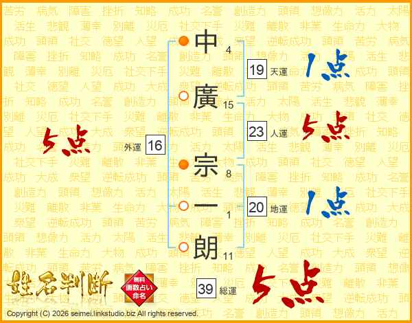 中廣宗一朗さんの総運は39画の5点!