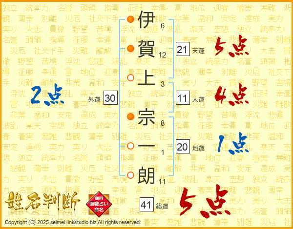 伊賀上宗一朗さんの総運は41画の5点!