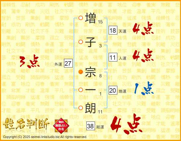 増子宗一朗さんの総運は38画の4点!