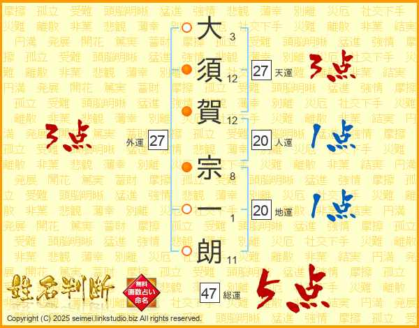 大須賀宗一朗さんの総運は47画の5点!