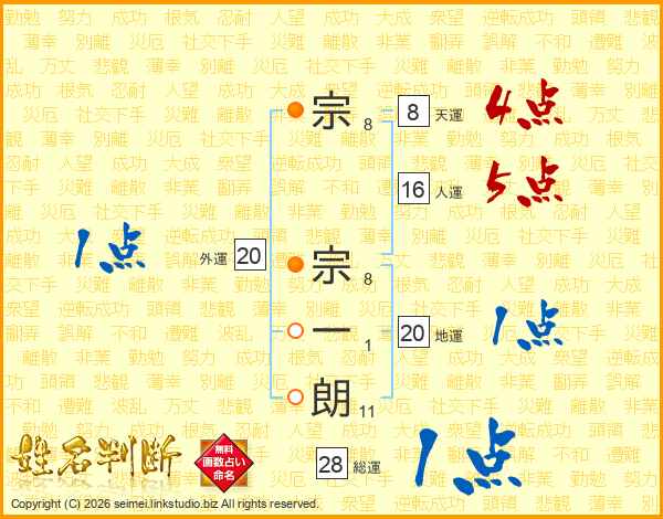 宗宗一朗さんの総運は28画の1点!