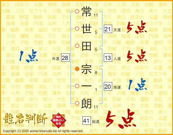 常世田宗一朗さんの総運は41画の5点!