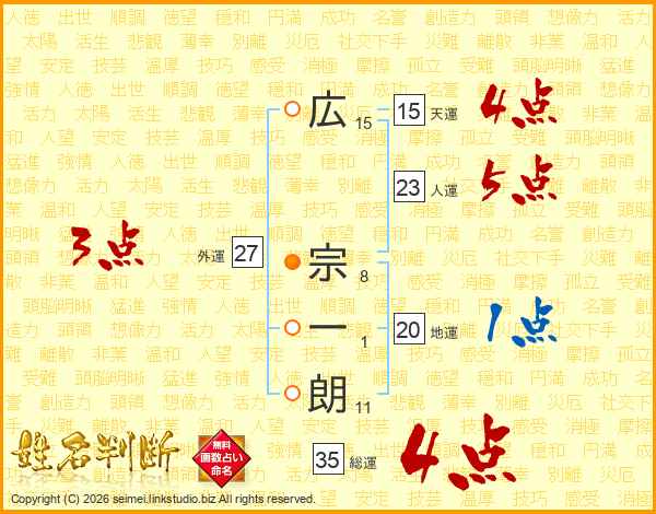 広宗一朗さんの総運は35画の4点!